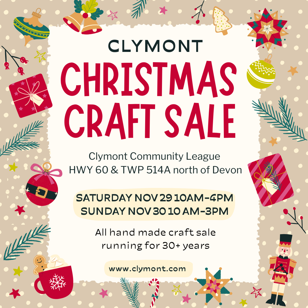 Clymont's annual craft sale of totally hand made gifts for you and your loved ones that has been running for over 30 years by a group of dedicated volunteers! Entry is free. Visit with Santa on Saturday & Sunday 1 to 2:30pm. Concession and coffee...